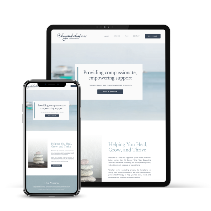 Review my complete process for designing, branding, and developing this professional website for a local counseling service provider. This project demonstrates my ability to craft a trustworthy brand identity and a secure, user-friendly digital platform that effectively communicates services and guides users toward booking their first session.